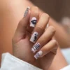 Aplique suavemente el papel de aluminio a la uña con el lado mate apuntando hacia abajo e imprímalo en la capa adhesiva del pegamento de papel de aluminio.