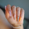Aplique suavemente el papel de aluminio a la uña con el lado mate apuntando hacia abajo e imprímalo en la capa adhesiva del pegamento de papel de aluminio.